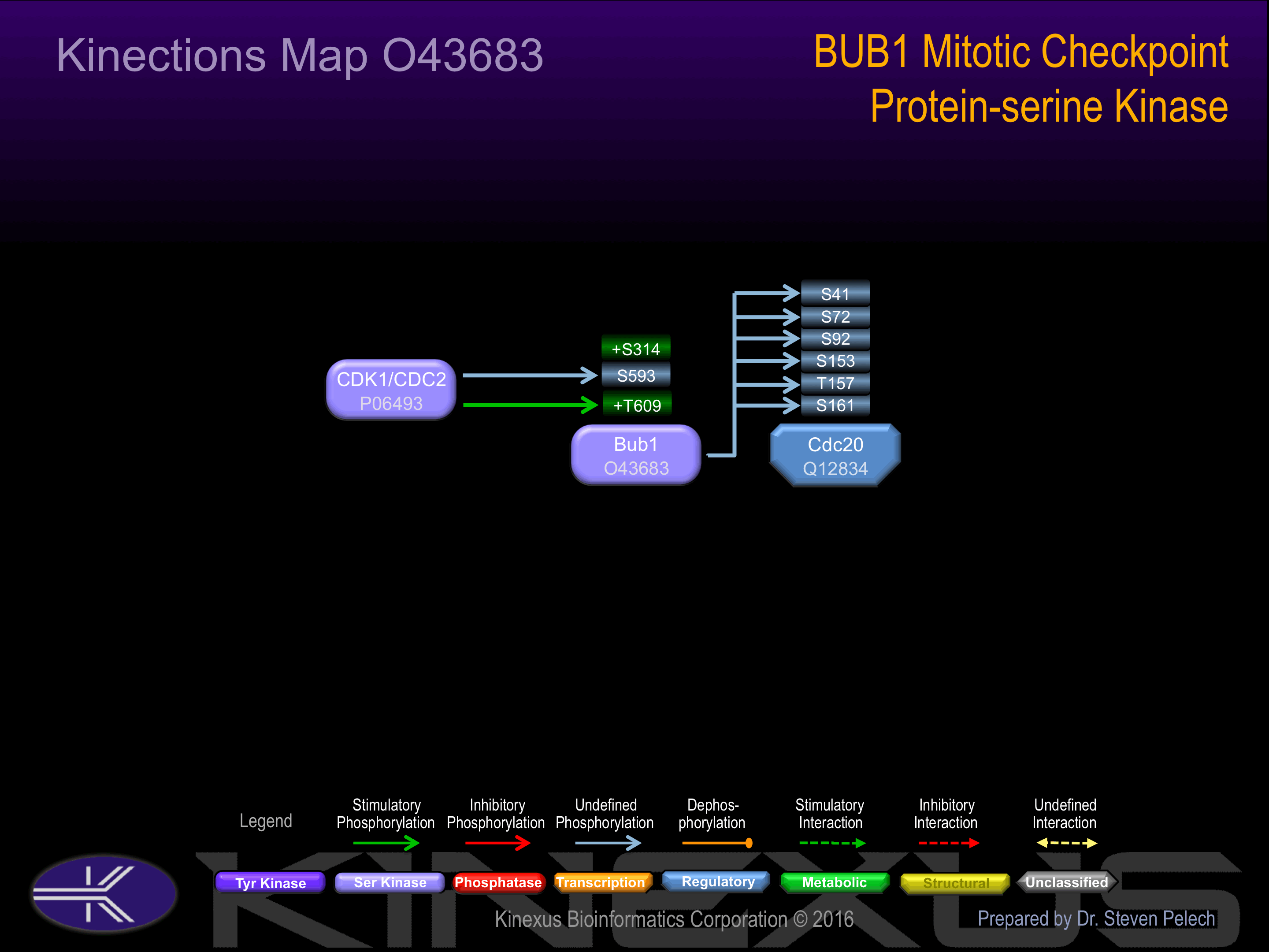 Insertional mutagenesis studies in mice have not yet revealed a role for this protein kinase in mouse cancer oncogenesis. Mutations that prevent interaction with CASC5 include A106D/W, and L122G. Spindle-assembly activity can be partially salvaged with an A130S mutation, but kinetochore localization and binding to CENPF, SGOL1, and BUBR1 are still inhibited. Ubiquitination-mediated loss and CDH1-dependent protein degradation were mediated through K535A, E536A, N537A, K625A, E626A and N627A mutations. Interaction between BUB1 and Plk1 can be reduced with a T609A mutation, and BUB1 activity can be abrogated with a K821A mutation.